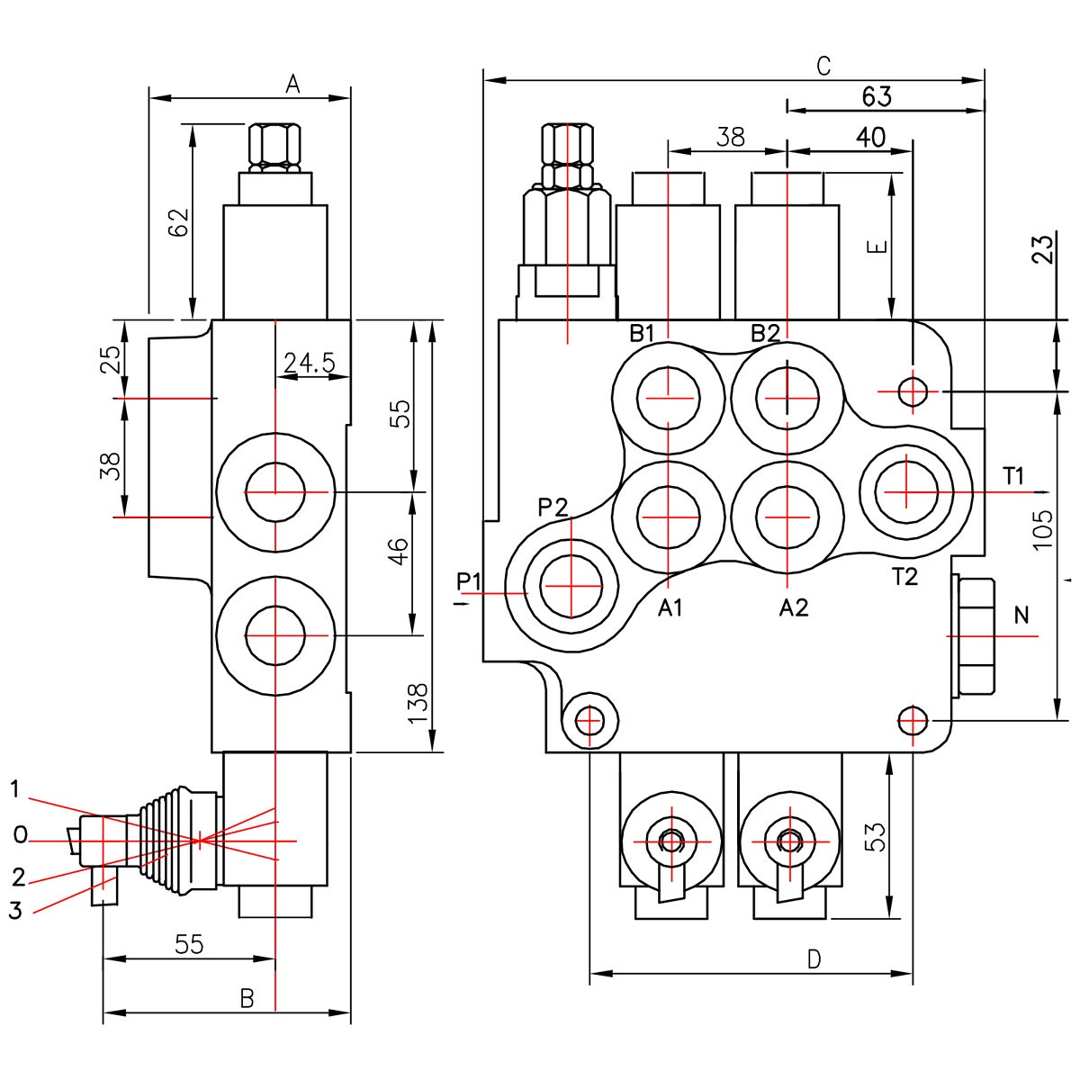 RIKTNINGSVENTIL 1/2 12V 80L 4-SPOLE DUBBELVERKANDE